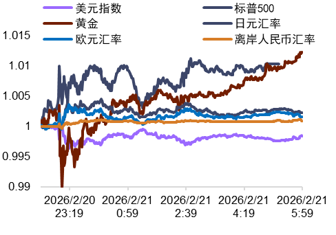 美国最高法裁定IEEPA关税非法,美国政府旋即宣布将援引其他法律加征关税。2月20日,美国最高法院以6比3的投票比例做出正式裁决[1],裁定特朗普无权依据IEEPA征收关税。美国最高法院的多数法官指出[2],IEEPA并未授权美国总统征收关税的权力。同时,最高法也并未提及已缴纳关税应如何退款,我们认为相关退款事宜或在后续继续创造不确定性。在美国最高法公布上述判决后,股票与黄金价格走高,美元小幅回落,非美货币大多升值(图表1),美债收益率走高(图表2)。特朗普在2月21日宣布[3]依据《1974年贸易法》第122条,对贸易伙伴征收15%,为期150天的关税。其表示还将根据第301条启动几项新的针对特定国家的调查。此外,美国财长贝森特指出[4],根据第301条和《1962年贸易扩展法》第232条,新关税以及可能提高的关税,将导致2026年的关税收入几乎没有变化。