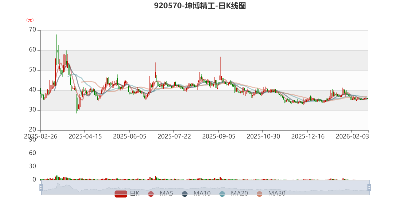 中证智能财讯坤博精工(920570)2月26日晚间披露2025年业绩快报,公司实现营业收入1.21亿元,同比下降5.46%;归母净利润986.34万元,同比下降5.49%;扣非净利润784.91万元,同比增长192.43%;基本每股收益0.2元,加权平均净资产收益率为2.86%。以2月26日收盘价计算,坤博精工目前市盈率(TTM)约为181.08倍,市净率(LF)约5.2倍,市销率(TTM)约14.61倍。