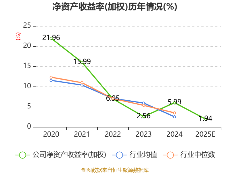 数据显示,2025年公司加权平均净资产收益率为1.94%,较上年同期下降4.05个百分点。